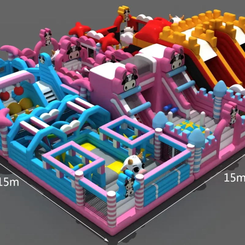 🏗️ Commercial Farm Construction Built from premium 0.55mm + 0.4mm durable PVC tarpaulin with reinforced seams designed for intensive commercial use. The high-quality construction maintains vibrant farm colors and detailed cow decorations through extensive operation while meeting safety standards for busy entertainment venues.