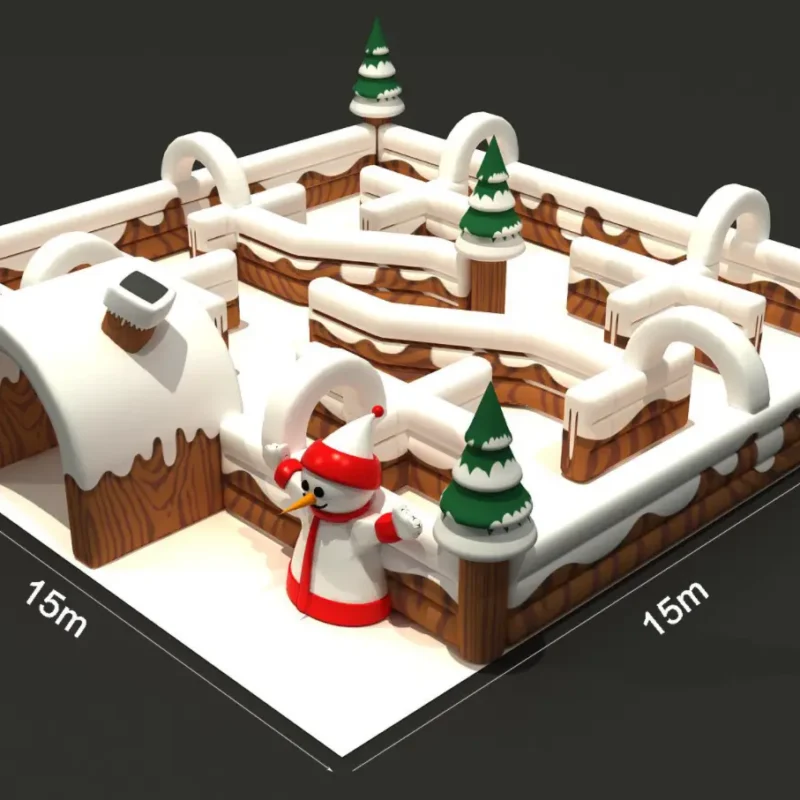 ⛄ Whimsical Holiday Details Crafted to look like a life-sized confectionery creation, this maze features walls that resemble delicious gingerbread cookies topped with fluffy white icing. Participants will be greeted by a cheerful inflatable snowman and navigate past festive Christmas trees as they seek the path to the exit. The enchanting design and friendly characters create an immersive and joyful experience, making it a perfect photo opportunity for families.