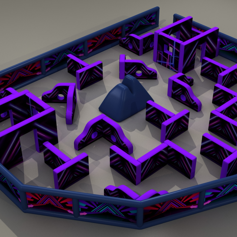 🛡️ Built for Intense Battles Constructed from commercial-grade 0.55mm and 0.4mm durable PVC tarpaulin, this arena is built to withstand the rigors of fast-paced laser battles. The high-quality material ensures structural integrity and longevity, making it a reliable and profitable investment for rental businesses and family entertainment centers. The vibrant, futuristic graphics are printed to last, keeping the arena looking sharp mission after mission.
