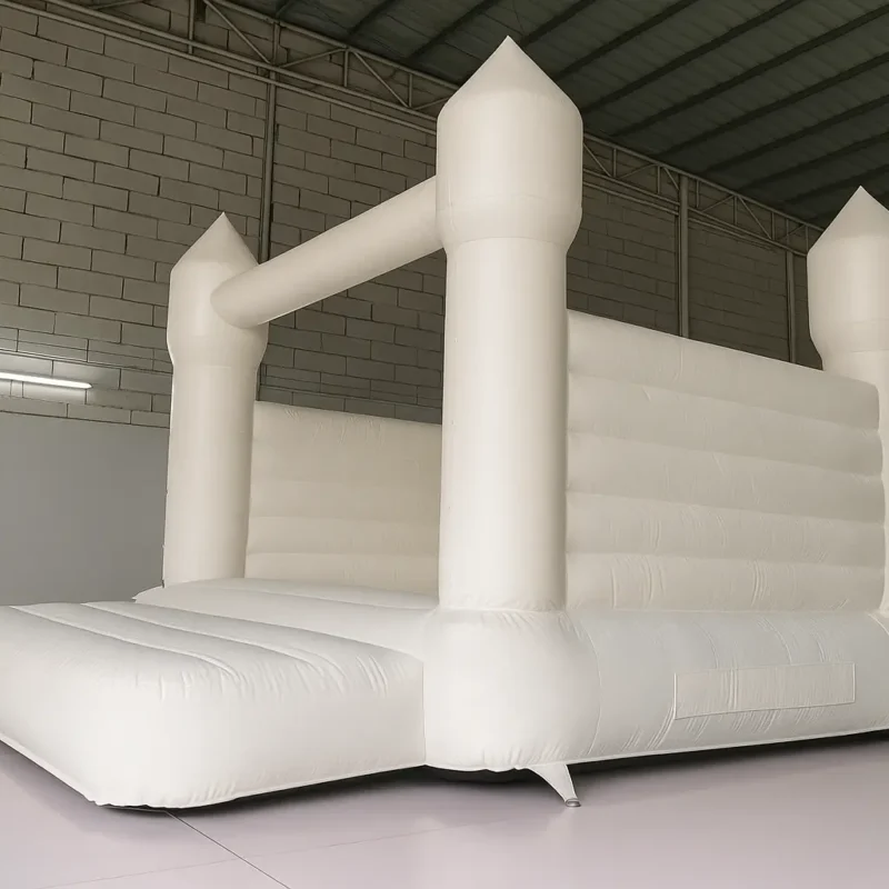 Crafted from heavy-duty 0.55mm + 0.4mm commercial grade PVC tarpaulin in pristine white with reinforced seams and professional-grade materials. The premium construction maintains the immaculate white appearance through multiple uses while ensuring structural integrity for safe adult and child use during special celebrations.