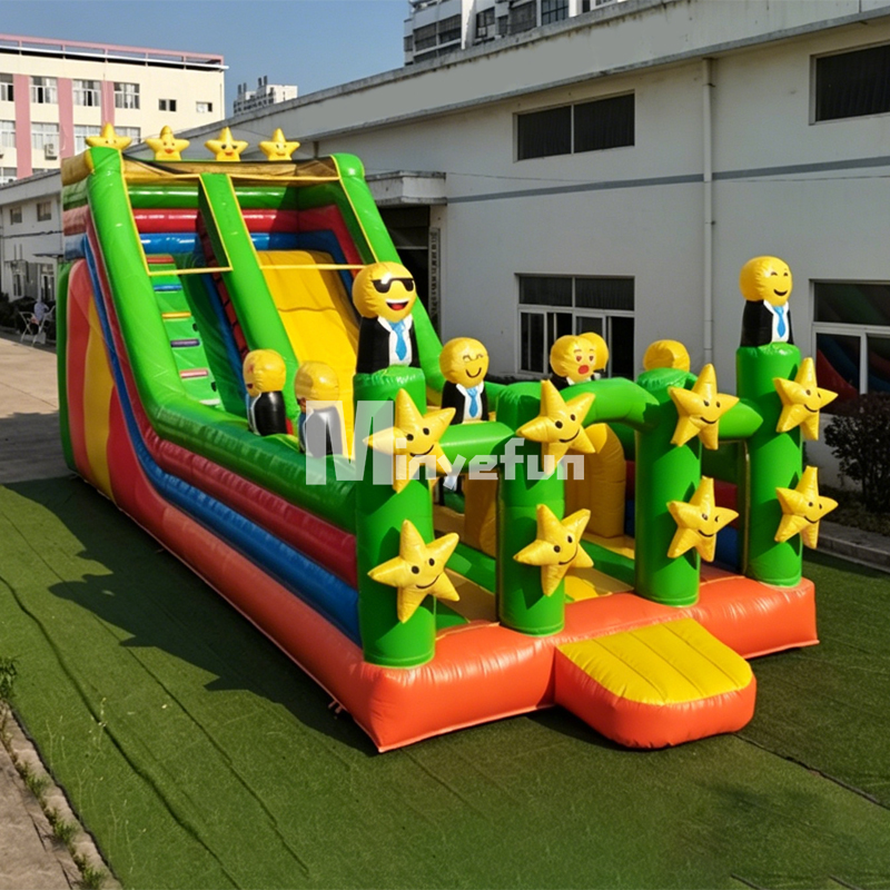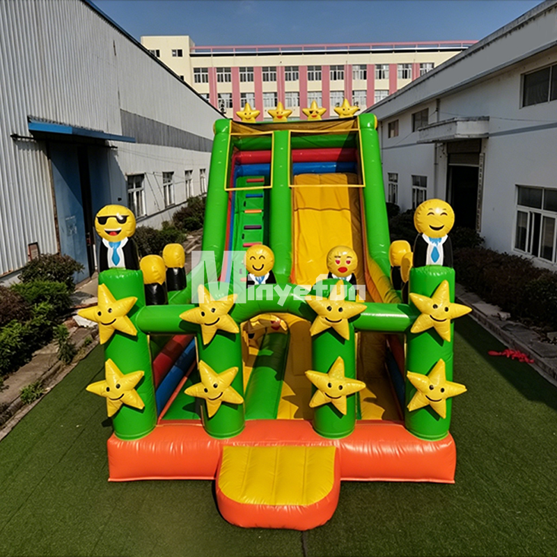 A: Yes! We offer full customization services. You can adjust the slide size, color scheme, add logos, change the emoji/star designs, or add a pool attachment to turn it into a full water slide. Contact us for a custom quote.