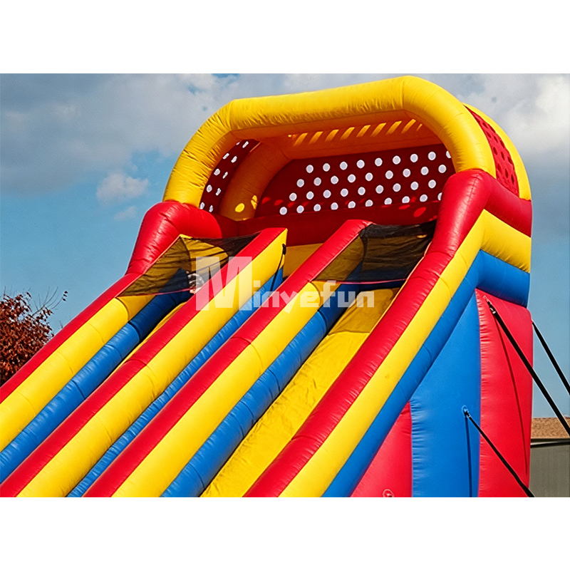 A: Absolutely. The slide is built with safety as the top priority: reinforced side barriers, top safety netting, anti-slip climbing steps, and a soft landing zone. It uses non-toxic, eco-friendly PVC material that is certified safe for children, and all seams are reinforced to prevent air leaks during use.