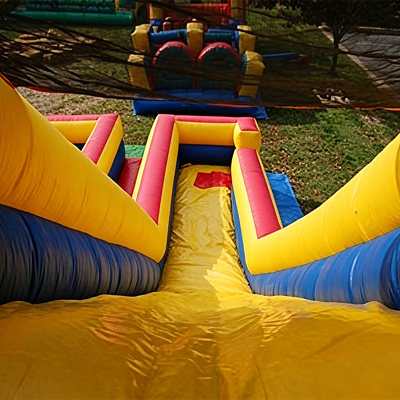 A: Setup is simple: 2 people can fully inflate and anchor the slide in 15-20 minutes. Taking down, deflating, and packing it away takes around 20-30 minutes, no professional tools or skills required.