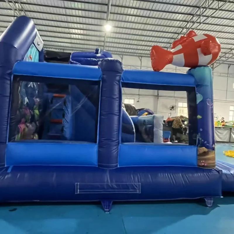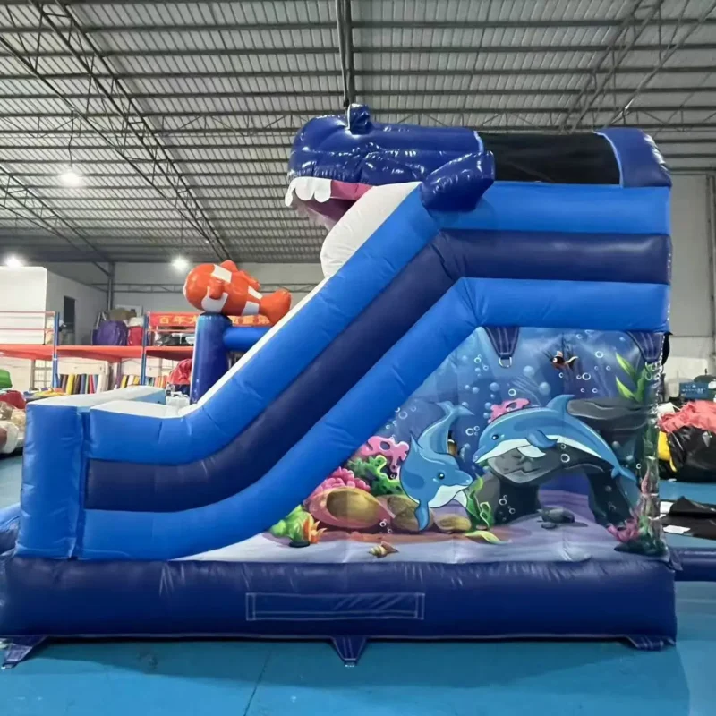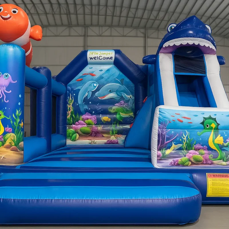 🦈 Dive into adventure with our thrilling Inflatable Combo with Shark Slide, featuring an immersive underwater ocean theme complete with a magnificent shark slide entrance, vibrant marine life graphics, and captivating deep-sea scenery. This spectacular attraction transforms any event into an underwater adventure that captivates children’s imaginations while providing hours of active entertainment through bouncing and sliding activities.