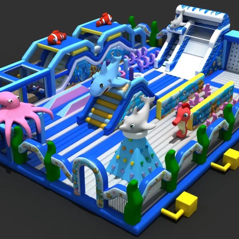 🏗️ Commercial Ocean Construction Built from premium 0.55mm + 0.4mm durable PVC tarpaulin with reinforced seams designed for intensive commercial use. The high-quality construction maintains vibrant ocean blues and detailed sea creature designs through extensive operation while meeting safety standards for busy entertainment venues.