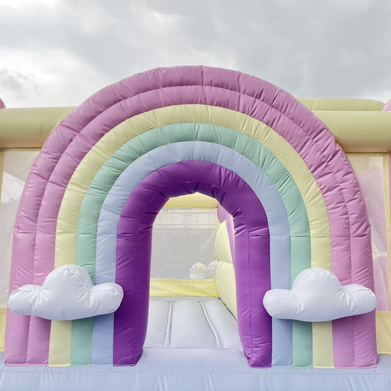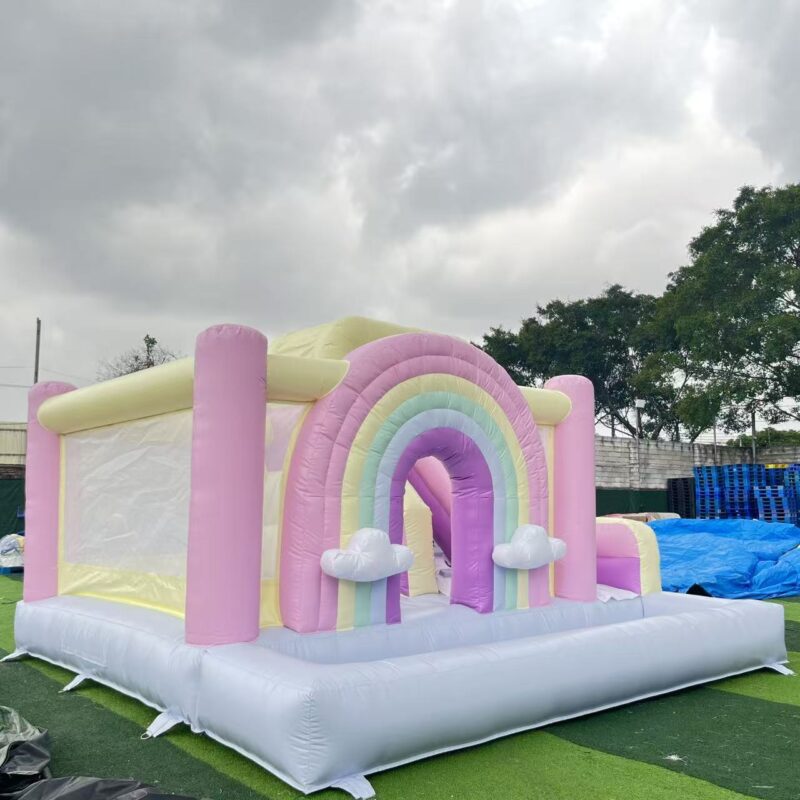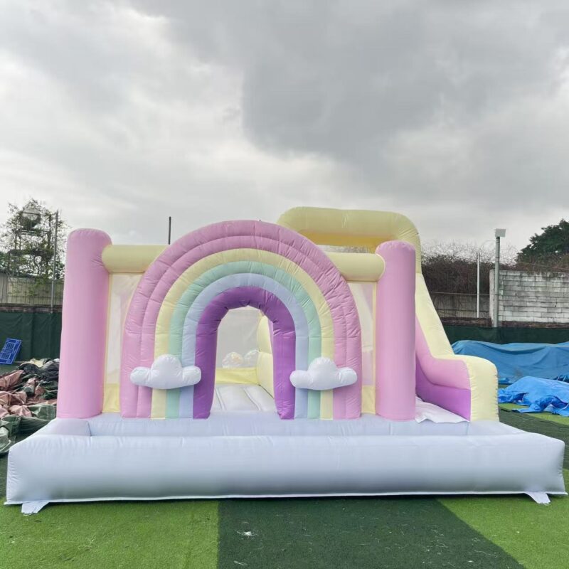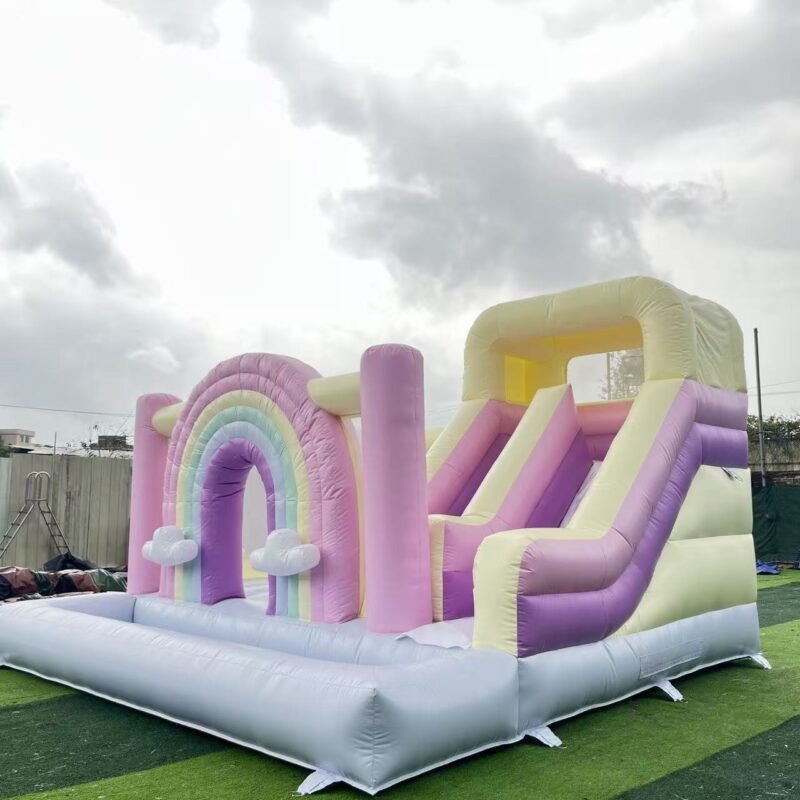 ✅ All-in-One Fun Design: Spacious enclosed bounce area with full mesh safety netting, dual sliding lanes for side-by-side fun, and a rainbow arch entrance, delivering endless jumping and sliding fun.