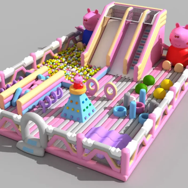 🐷 Bring the beloved world of Peppa Pig to life with our spectacular Peppa Pig Themed Inflatable Play Park, featuring the iconic pink pig family and their colorful adventures across a massive 20 x 15 meter entertainment complex. This officially-inspired design captures the charm and whimsy of Peppa’s world with bright pinks, cheerful pastels, and beloved character elements that create an immersive play experience for young fans and families.