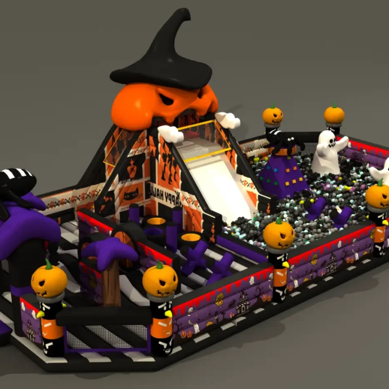 👻 Monster Mash Activity Zone This Halloween carnival includes towering pumpkin head slides, haunted house climbing structures, witch hat obstacle courses, ghost tunnel mazes, monster ball pit graveyards, and spooky carnival game stations designed for frightfully fun adventures. The Halloween elements encourage seasonal celebration while providing thrilling activities that build courage, imagination, and party spirit through interactive haunted experiences and friendly monster encounters.